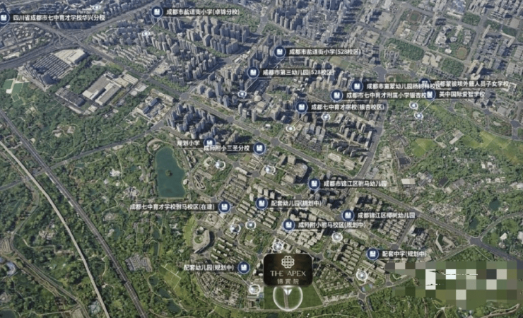 2所七中育才系、2所成师附小系;4所国际校园、7所幼儿园等近20所校园。许燎源博物馆、蓝顶、何多苓等艺术IP,群落交错尖端人文质量与见识,启迪一座城市的未来。